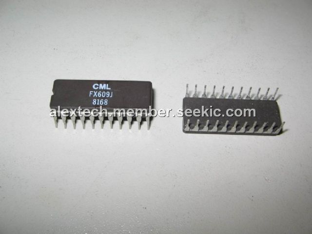 The FX609J is an LSI circuit designed as a continuously variable slope delta modulation(CVSd) codec and is intended for use in voice storage, time domain speech scramblers and digital speech communications equipment. Encode input and decoder output analogue filters are incorporated on chip and use switched capacitor technology. Sampling clock rates can be programmed to 16, 32 or 64k bits/second from an internal clock generator or may be externally applied in the range 8 to 64k bits/second. Sampling clock frequencies are output for the synchronisation of external circuits. The internal clocks are derived from an on-chip reference oscillator using an externally connected crystal. The FX609J is a low power, 5 volt CMOS device and is available in 22-pin DIL, 24-pin plastic quad packages.